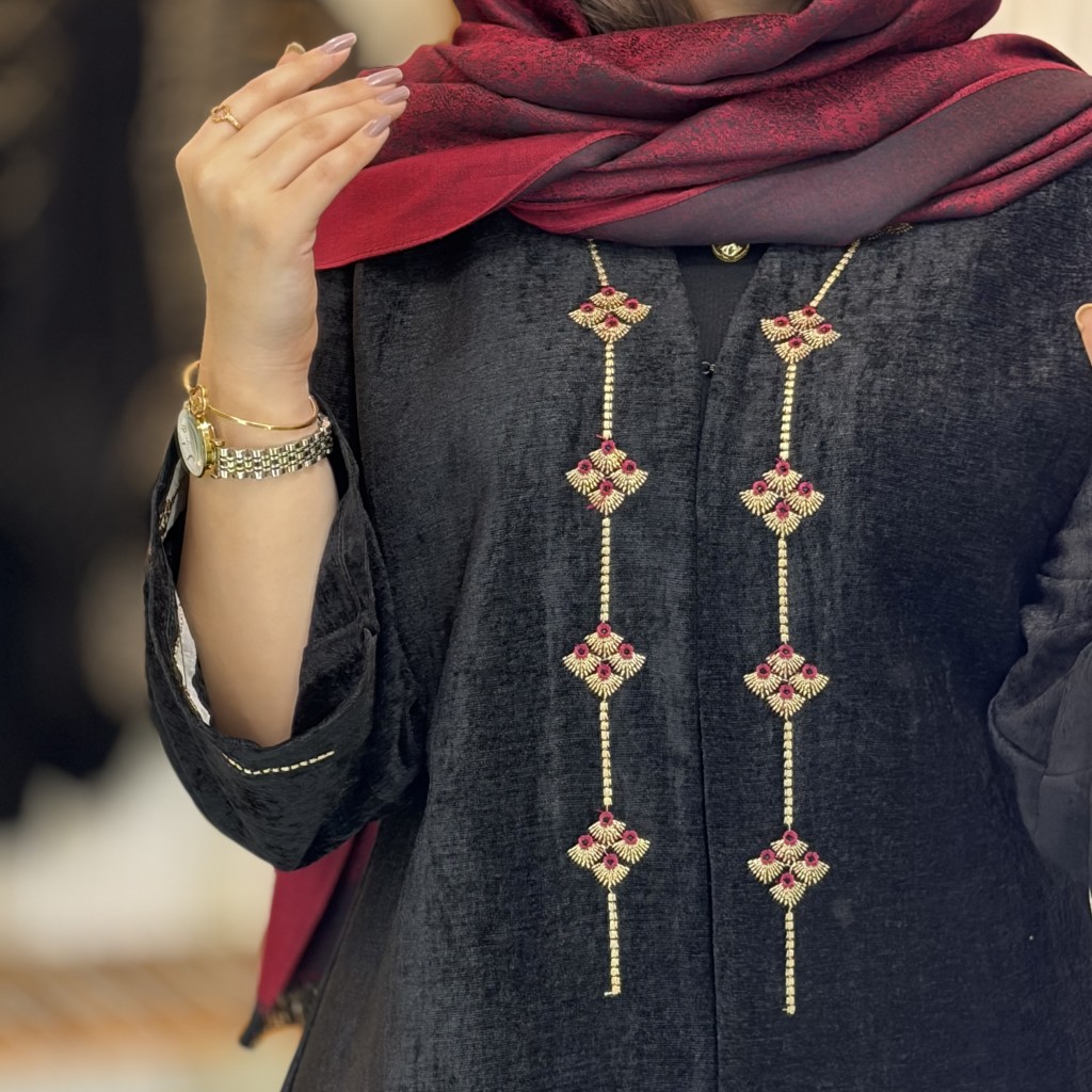 ✔️مدل :کت یقه گرد، گلدوزی شده