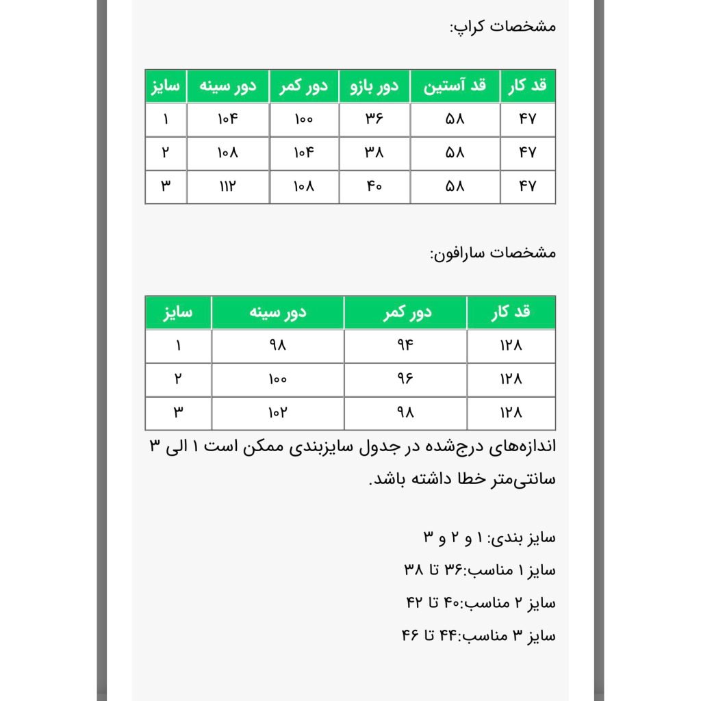 سایز 1: 98 | سایز 2: 100 | سایز 3: 102